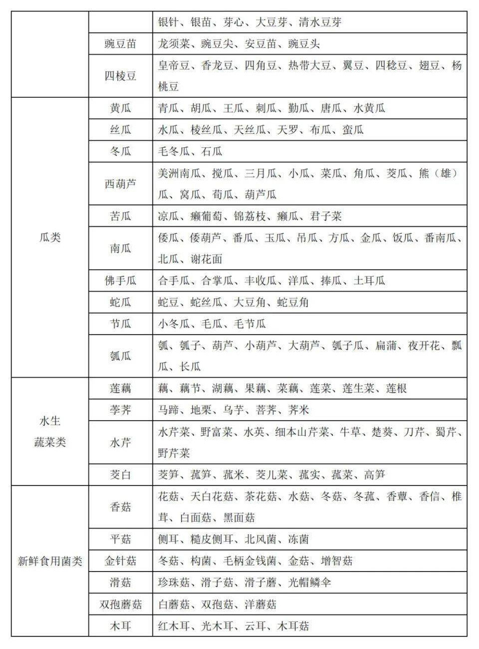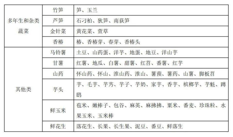 2、蔬菜別名及常用商品名稱對(duì)照表