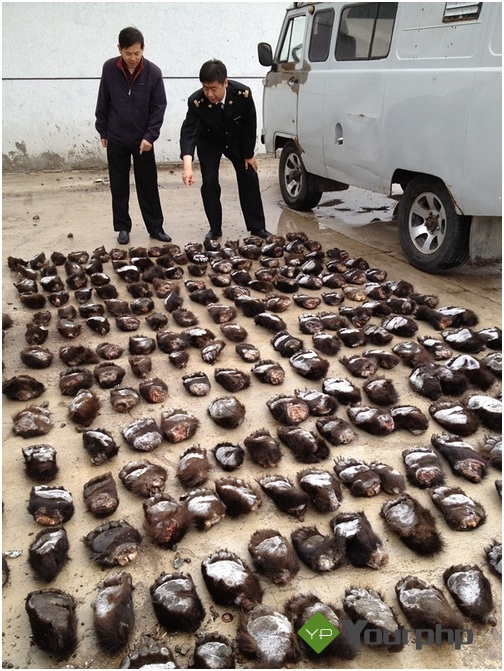 “有毛!”此時(shí),正在拆卸輪胎的工人脫口而出。隨后,血淋淋、肉乎乎的一個(gè)黑色熊掌被從輪胎里取了出來。一個(gè)、二個(gè)……共44個(gè)熊掌被一一取出?!白罱K5個(gè)輪胎內(nèi)共取出了213個(gè)熊掌,大的近四斤、小的僅有4兩重,肯定是小熊的掌。這些人實(shí)在是太殘忍了,213只熊掌預(yù)示著至少有54只熊被獵殺?!眳菓c巖憤憤地說。