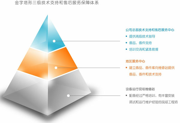 滿足客戶要求,并提供全面的技術(shù)支持和服務(wù),是公司服務(wù)的宗旨。公司根據(jù)實際情況,建立起金字塔形的三級技術(shù)支持和售后服務(wù)保障體系。為保證設(shè)備良好運行提供最大程度的便利。